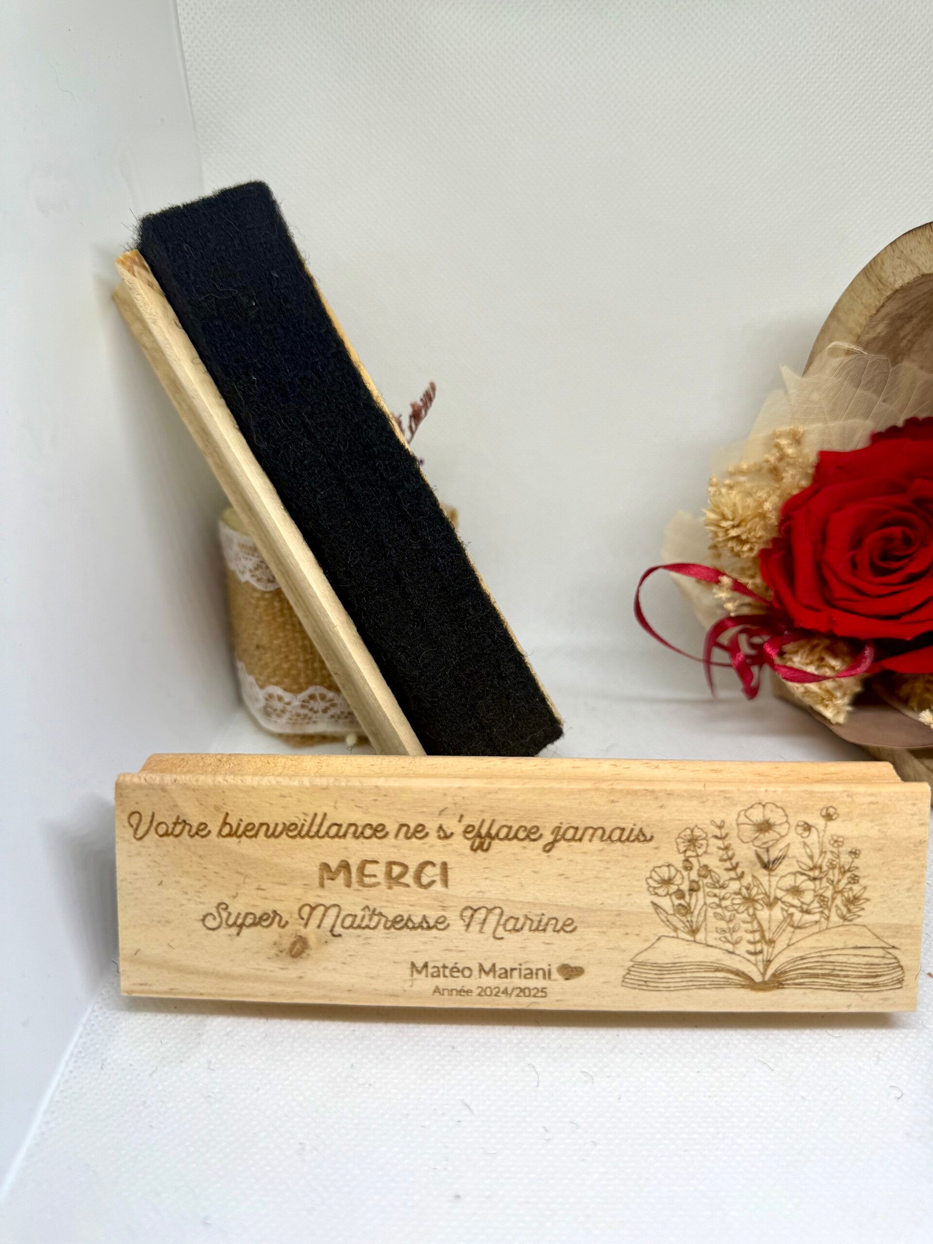 Effaceur de Tableaux en Bois Gravé avec Feutrine - Personnalisation pour Enseignants