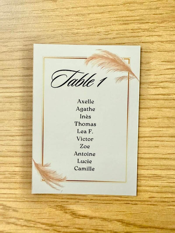 • 🎨 Personnalisation : numéro de table + liste des invités ou design sur mesure