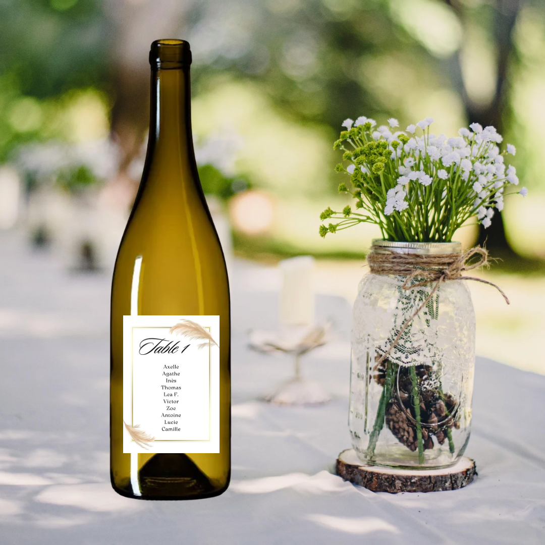 Étiquettes personnalisées pour bouteilles de vin – Plan de table mariage décor Pampa